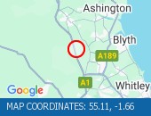Location: northbound between the junctions with the A167 Washington Birtley and the A692 .